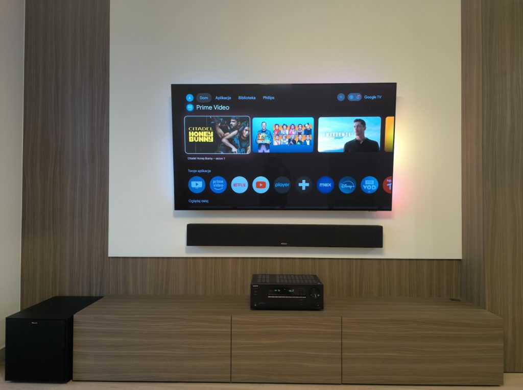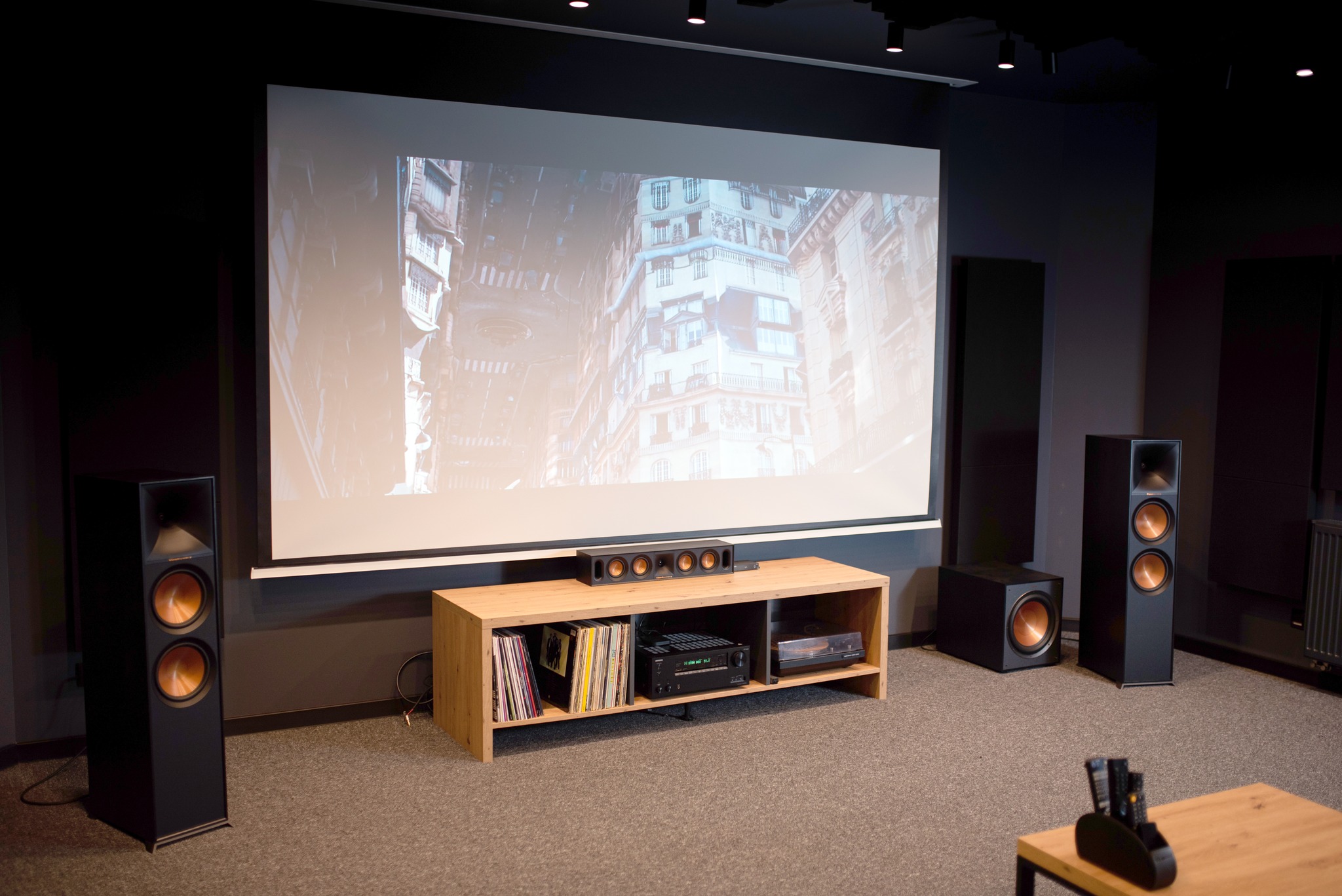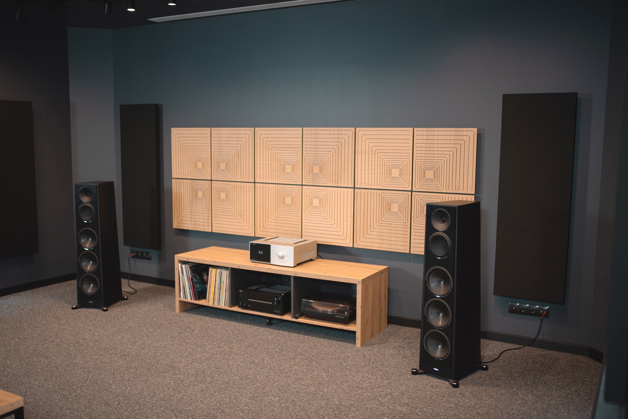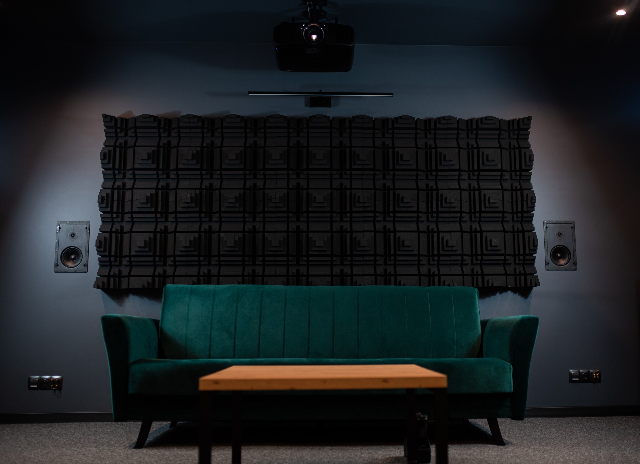 Do Państwa dyspozycji oddajemy naszą salę odsłuchową, która została profesjonalnie przygotowana akustycznie, by zapewnić warunki maksymalnie zbliżone do realnego użytkowania sprzętu. Można w niej przetestować zarówno systemy stereo, jak i kino domowe w konfiguracji Dolby Atmos 7.2.2.