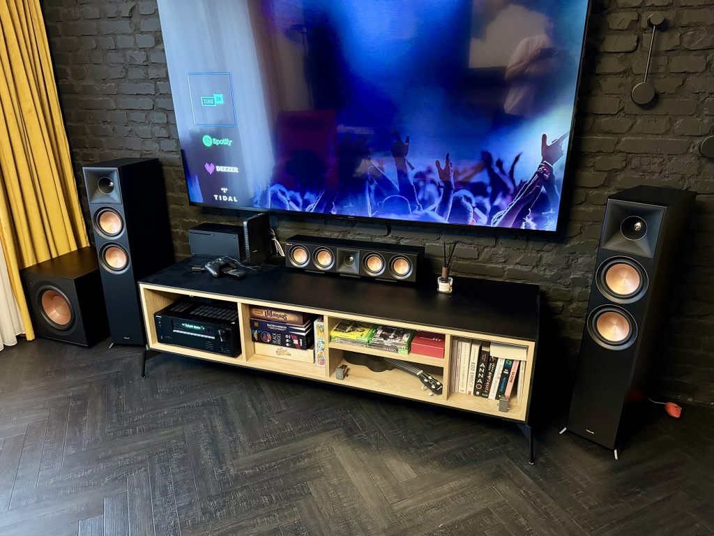 Instalacja kina domowego opartego o kolumny głośnikowe marki Klipsch oraz amplituner firmy Onkyo. Całe kino zostało zainstalowane w niedużym mieszkaniu i zapewnia świetne efekty kinowe w domowym zaciszu.