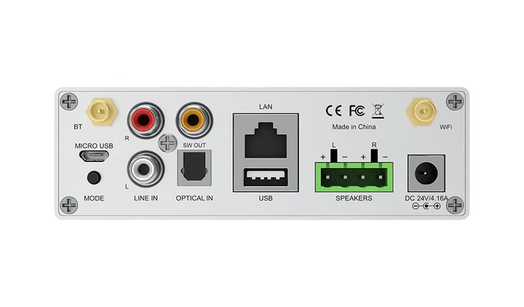 • Dodaj możliwości bezprzewodowe do swojego domowego systemu audio: Dodaj Wi-Fi, AirPlay , Spotify Connect i Bluetooth 5.0 do swoich głośników pasywnych i aktywnych. Podłącz istniejące wzmacniacze, przedwzmacniacze i odbiorniki przez wejście optyczne i liniowe RCA lub dźwięk z komputera przez port Micro USB.