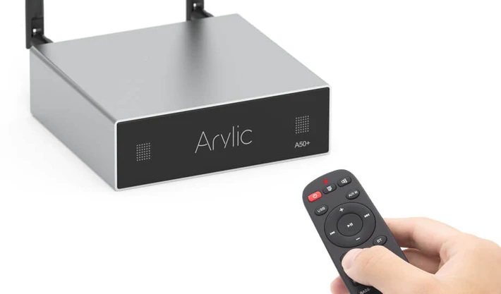 Dołączony pilot może sterować wszystkimi modelami Arylic w zasięgu ~15 metrów.
