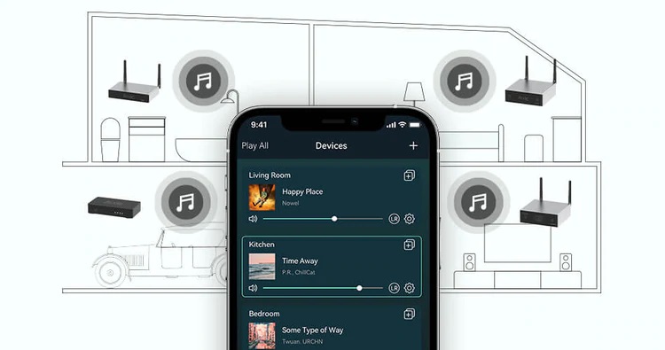 Dobierz i dopasuj dowolną kombinację streamerów Arylic, aby stworzyć unikalny system multiroom i odtwarzać tę samą muzykę w całym domu, wysyłać różne źródła do każdego pomieszczenia w tym samym czasie lub tworzyć własne, niestandardowe strefy multiroom… Wszystko kontrolowane przez naszą aplikację 4stream.