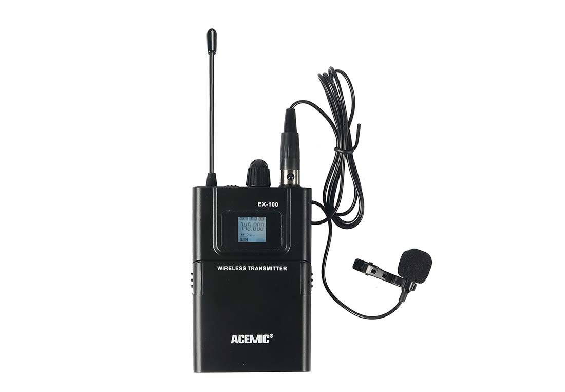 Dzięki zakresowi częstotliwości 600-928MHz i modulacji FM, Acemic EX-100 oferuje stabilne połączenie bez zakłóceń. Wysoka moc nadajnika (10mW) oraz zasięg działania do 150 metrów sprawiają, że system sprawdzi się zarówno na dużych scenach, jak i w mniejszych salach konferencyjnych.