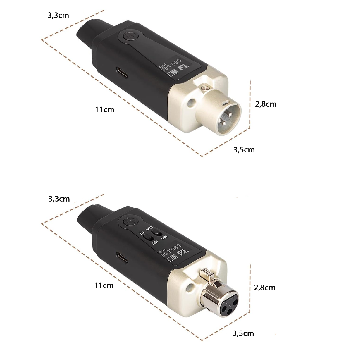 DNA WXLR1 bezprzewodowy system transmisji audio UHF nadajnik odbiornik USB-C +48V Phantom 2x adapter XLR/jack 6,35 mm zestaw