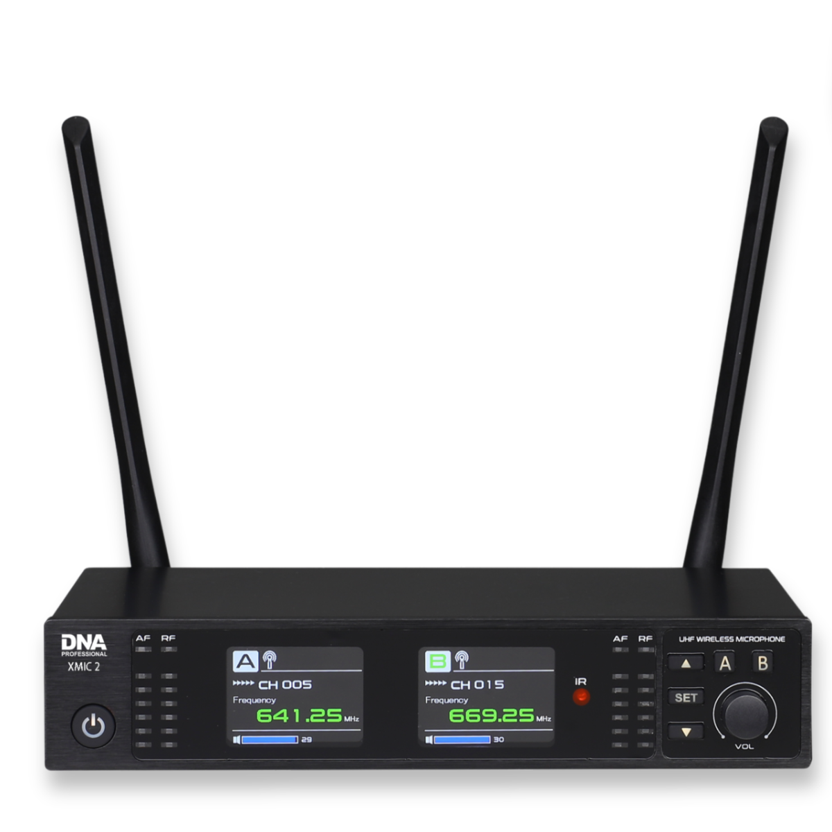 DNA XMIC 2 zestaw bezprzewodowy 2x mikrofon doręczny odbiornik UHF 518-542 MHz system nagłośnienia IR