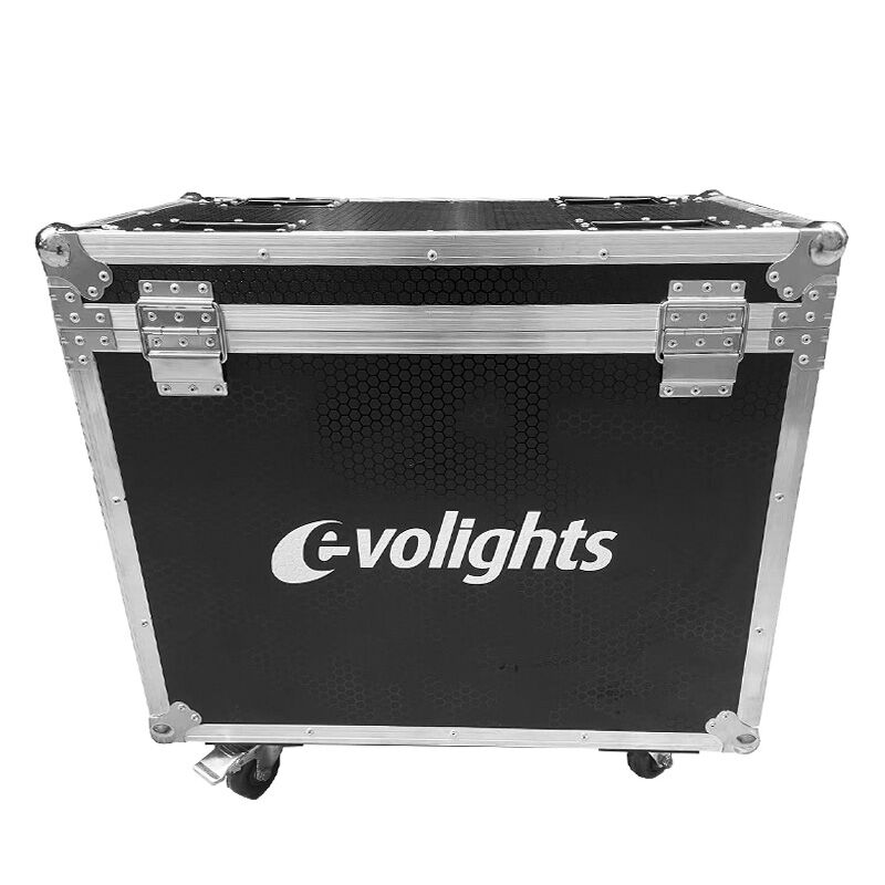 Evolights Lumen X Case 2in1 to ✅ profesjonalna i bardzo solidnie wykonana skrzynia transportowa na 2 reflektory estradowe Lumen X lub inne urządzenia o podobnych do tych reflektorów wymiarach. Case został wykonany z grubej, 7-milimetrowej sklejki pomalowanej specjalną, wodoodporną farbą. Jego krawędzie wzmocnione zostały aluminiowymi profilami. Na narożnikach znajdują się kulowe, chromowane osłony dodatkowo zabezpieczające konstrukcję oraz chroniące samo otoczenie skrzyni, dzięki wyeliminowaniu ostrych krawędzi.
