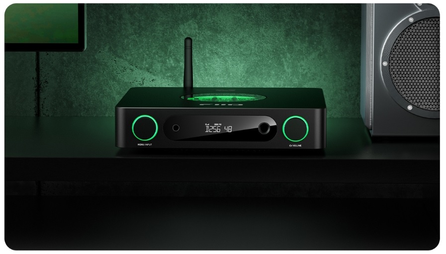 Podświetlenie RGB nie tylko informuje o aktualnej częstotliwości próbkowania dźwięku, ale również pozwala na pełną personalizację – możesz dostosować jasność, kolor oraz wybrać, czy światło ma pulsować, czy pozostać statyczne. Dzięki temu urządzenie nie tylko brzmi wyjątkowo, ale też wygląda tak, jak lubisz.
