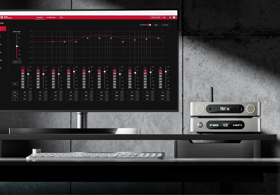 Dopasuj brzmienie do własnych upodobań dzięki wbudowanemu korektorowi parametrycznemu, opartemu na chipie XMOS XU316 i autorskim algorytmie strojenia FIIO. Korektor umożliwia regulację w 10 pasmach we wszystkich trybach pracy urządzenia. Za pomocą aplikacji FIIO Control lub interfejsu webowego możesz wczytywać gotowe presety, takie jak „Retro PEQ”, dostosowywać charakterystykę do konkretnych modeli słuchawek lub udostępniać własne ustawienia EQ.