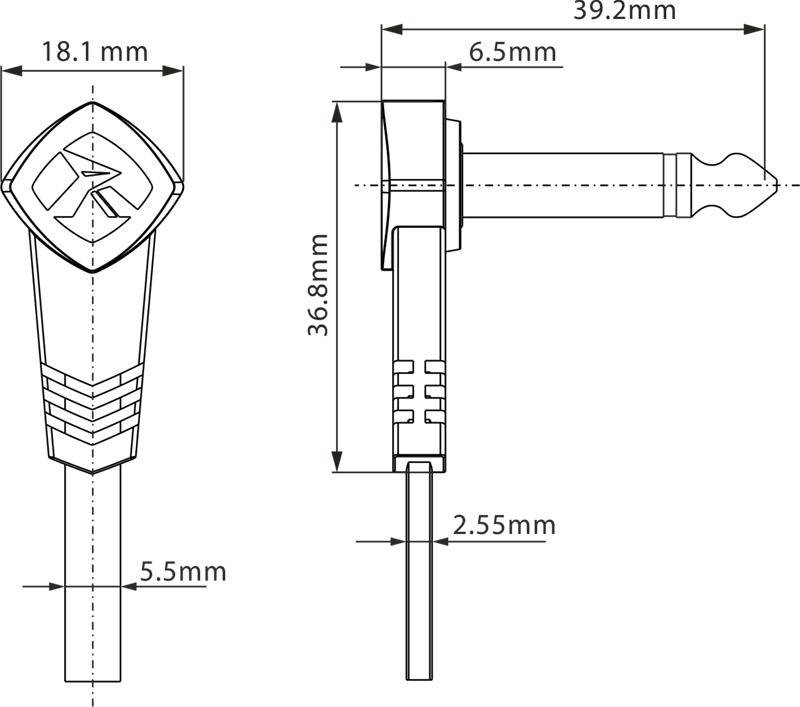 - Złącze 2: Wtyk Kątowy Jack 6.3mm Mono