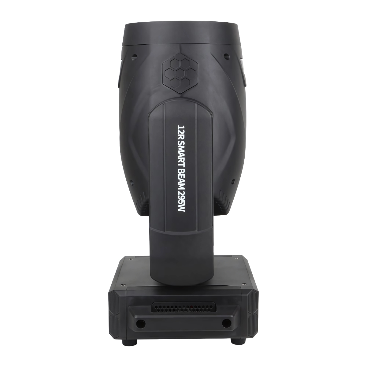 - Źródło światła: lampa wyładowcza 12R 295W + efekt ring 31×0,2W RGB LED 3w1 (czerwony, zielony, niebieski)