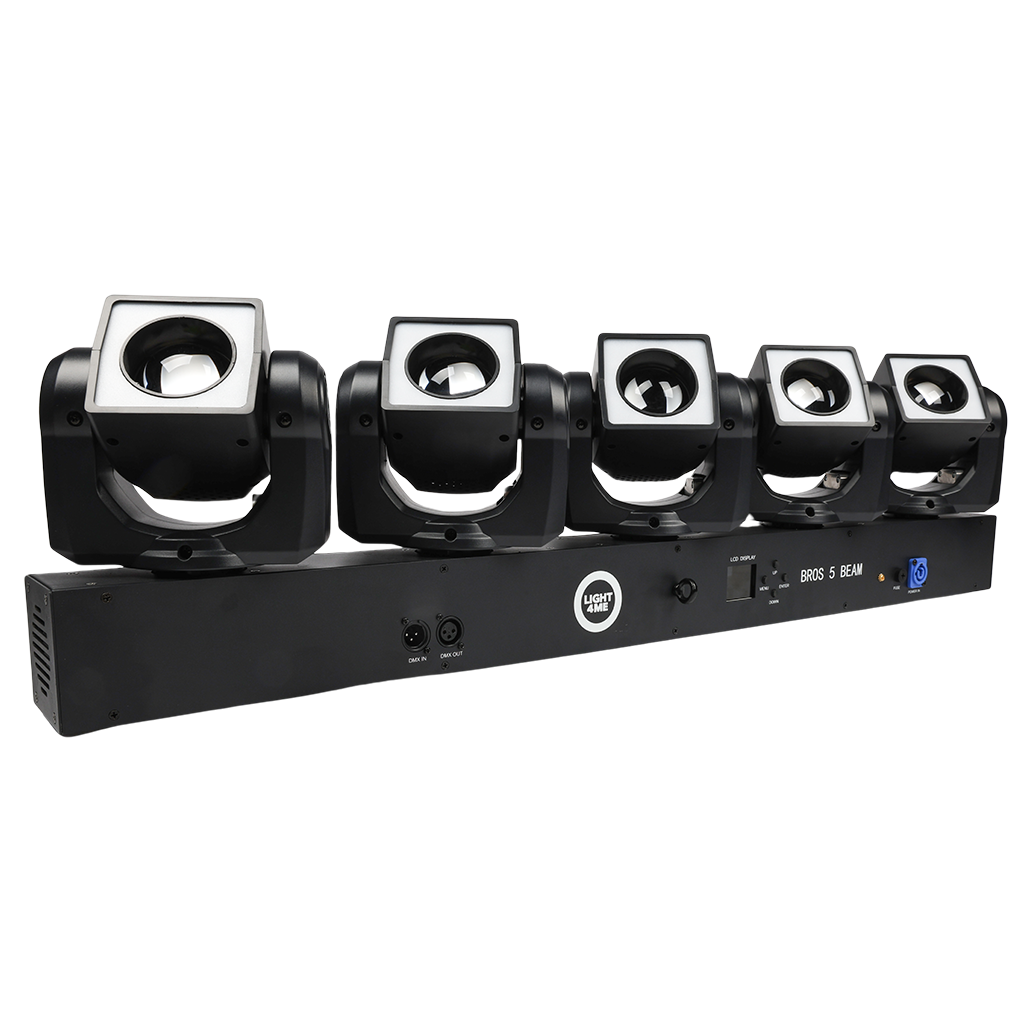 Light4me Bros 5 Beam to profesjonalny efekt świetlny LED, którego źródłami światła jest 5 głowic ruchomych wyposażonych każda w diody główne RGBW o mocy 40 watów i 24 diody RGB tła o mocy 0,2W! Pracą każdej z głowic, w tym efektami diod głównych i efektami tła, można oddzielnie sterować za pomocą protokołu DMX (Pixel Control). Oświetlenie LED świetnie spisuje się na scenach muzycznych, podczas przedstawień i pokazów, w klubach tanecznych i dyskotekach, a także jako dynamiczne oświetlenie dla zespołów weselnych i mobilnych DJ-ów ✅.