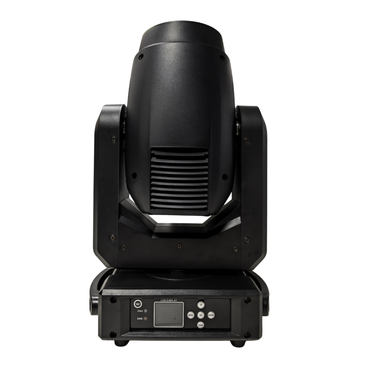 - Panel sterowania: wyświetlacz LCD + 5 przycisków, wskaźniki statusu DMX i ERR
