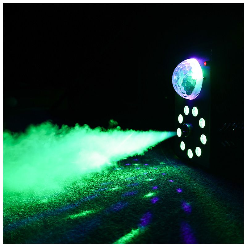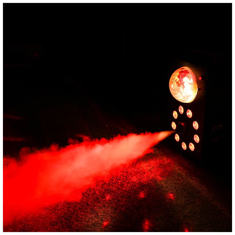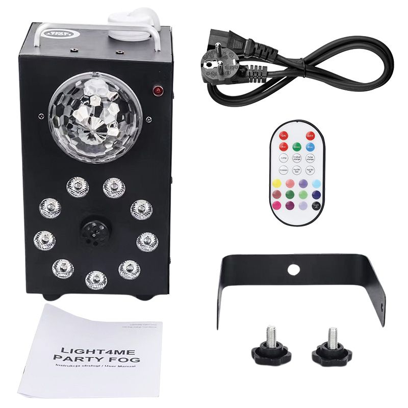 Light4Me Party Fog to kompaktowa, bardzo wydajna wytwornica dymu (wytwornica mgły) i multiefekt świetlny LED w jednym. Urządzenie wyposażone zostało w systemem diod LED RGB, który podświetla emitowaną mgłę, oraz kulę disco, która tworzy popularny efekt spotykany na wielu dyskotekach. Dymiarka jest ✅ zdalnie sterowana za pomocą bezprzewodowego pilota. Posiada grzałkę o mocy 700 watów, dzięki czemu szybko się nagrzewa. Sprzęt jest doskonałym narzędziem pracy dla mobilnych DJ-ów, zespołów muzycznych i firm organizujących wszelkiego rodzaju imprezy. Doskonale sprawdza się na małej scenie, w klubach tanecznych, dyskotekach, a także na 100-dniówkach, 18-nastkach, zabawach sylwestrowych i domówkach.