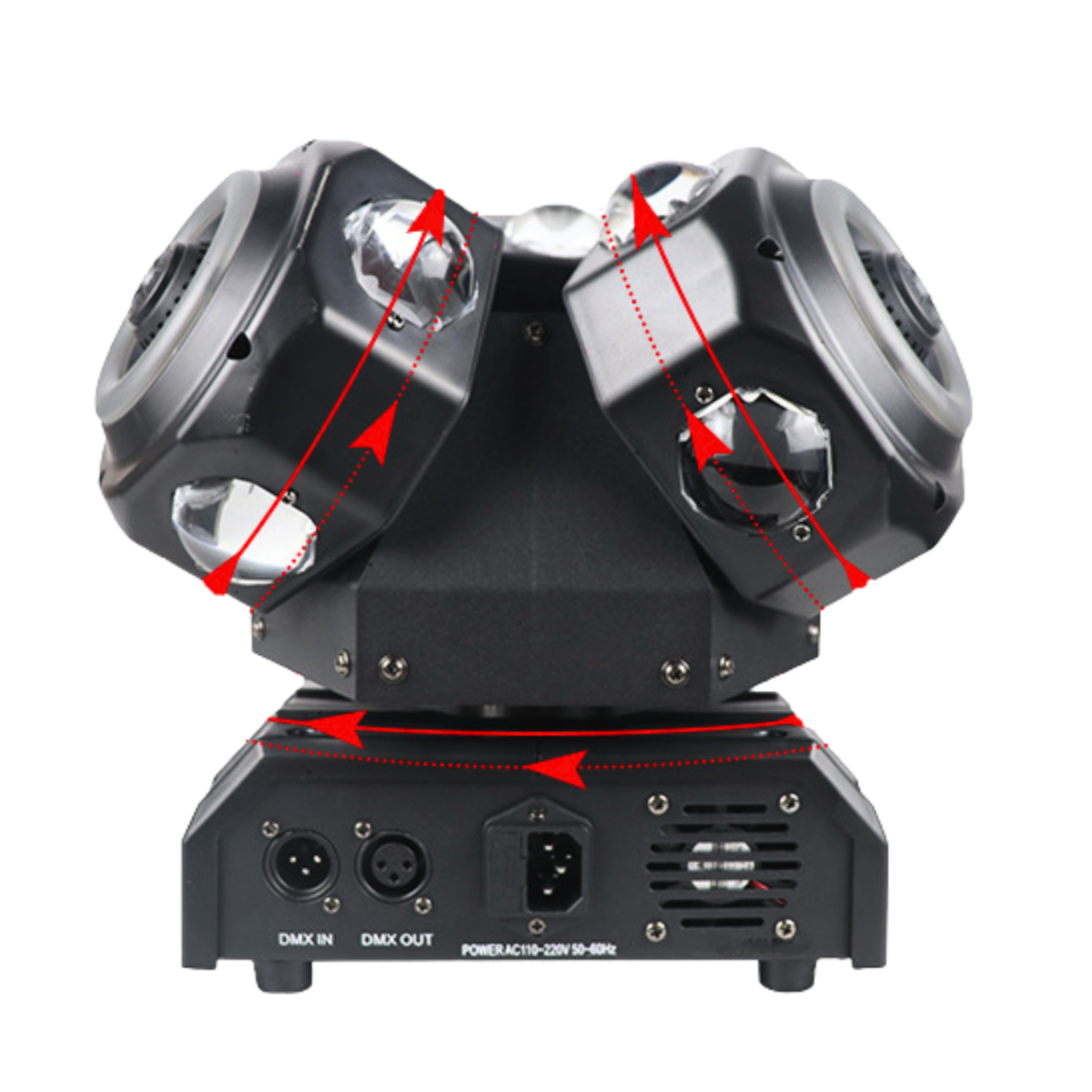 - Typ urządzenia: ruchomy multiefekt świetlny 5w1 LED DMX beam ring laser R/G/B z uchwytami montażowymi