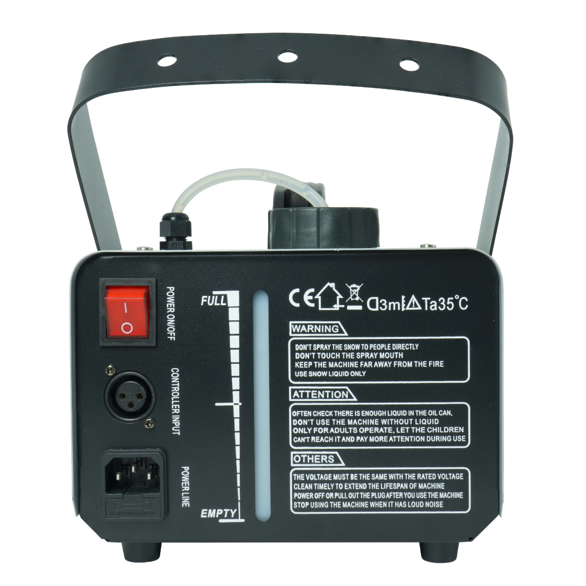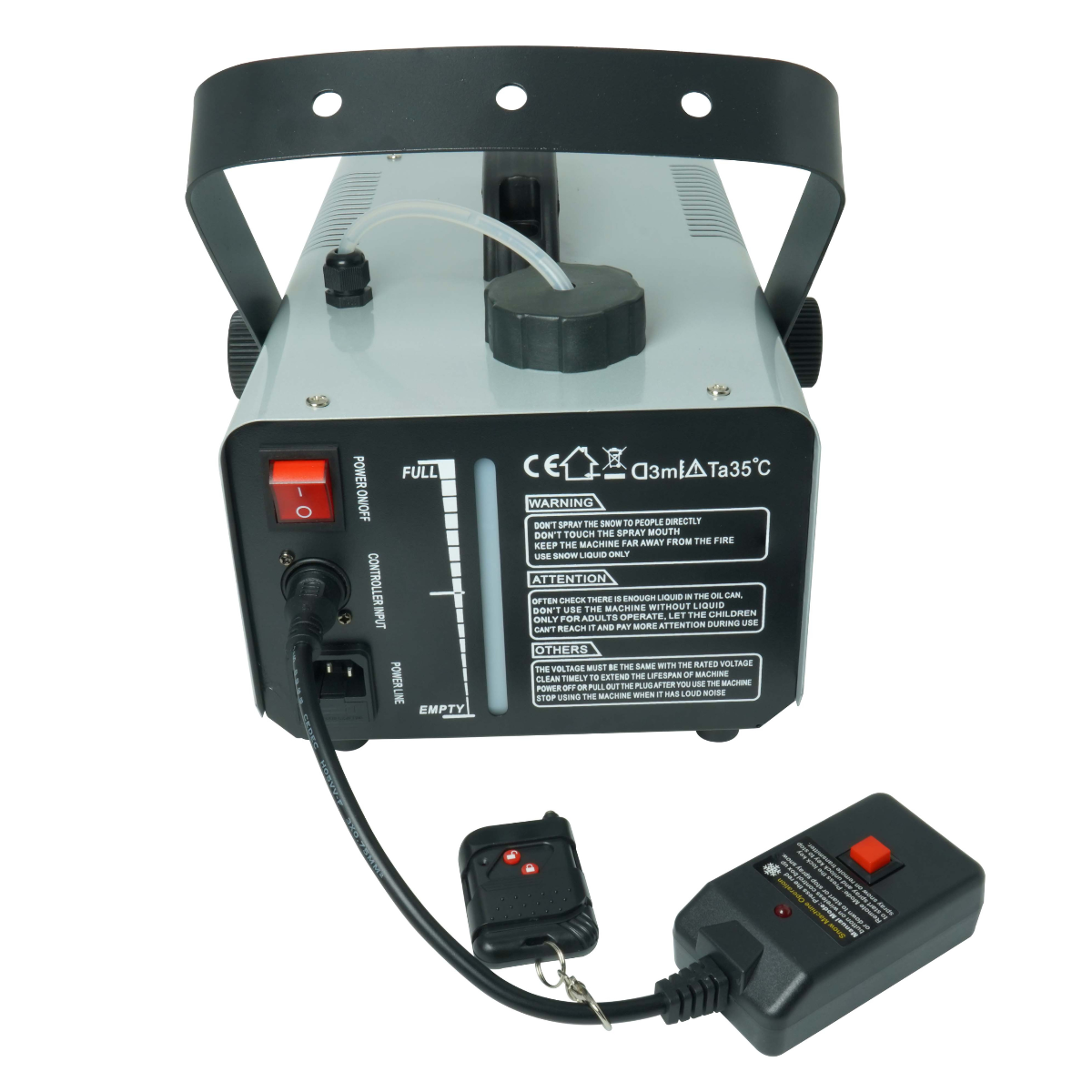 Steruj efektem śniegu zdalnie za pomocą pilota IR lub kontrolera przewodowego – dokładnie tak, jak Ci wygodnie ✨. Wytwornica jest wyposażona w przełącznik zasilania oraz wskaźnik poziomu płynu, co pozwala na bezpieczne i intuicyjne użytkowanie ✔️. Dzięki solidnemu uchwytowi montażowemu i rączce do przenoszenia, możesz ustawić urządzenie w dowolnym miejscu ✅. Kompaktowe wymiary i waga tylko 3,1 kg czynią ją łatwą w transporcie nawet podczas intensywnego harmonogramu wydarzeń⚡.