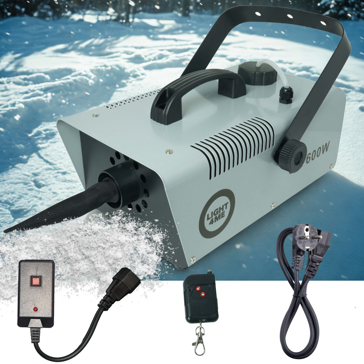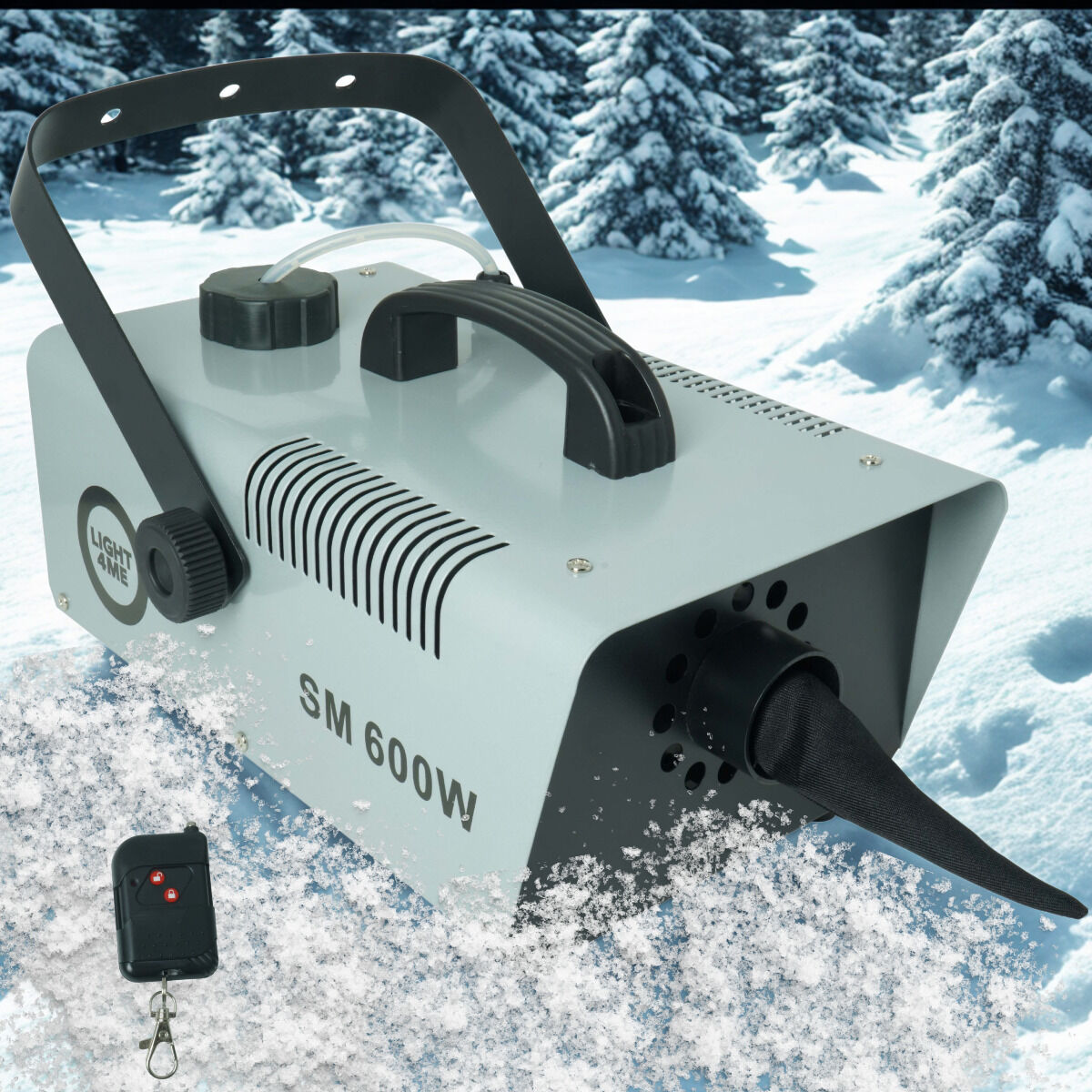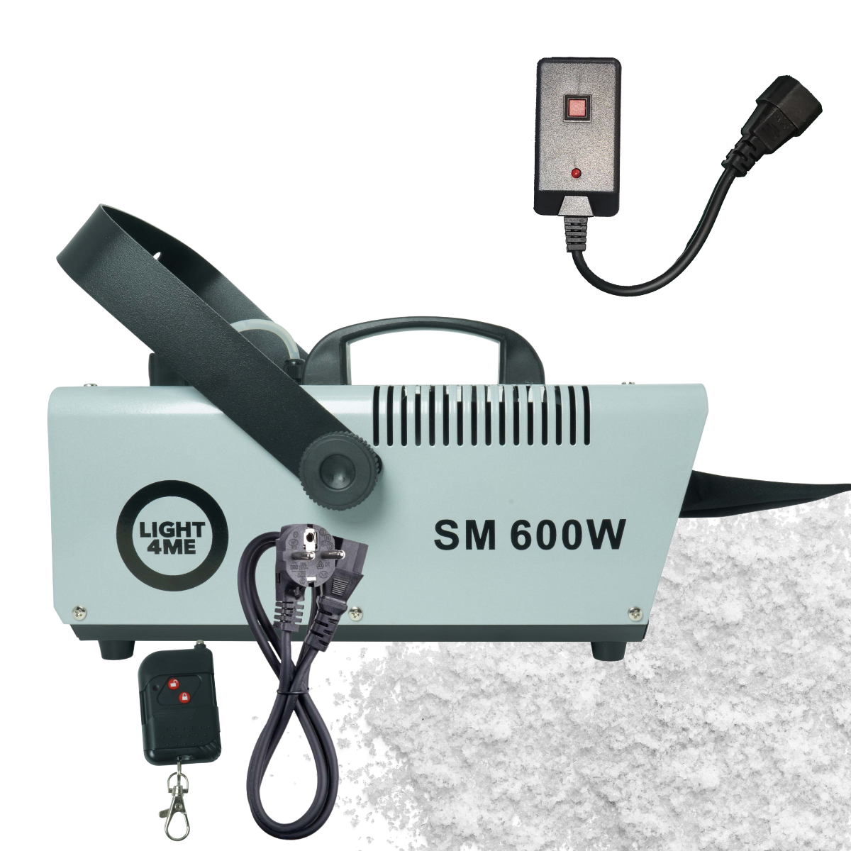Light4Me SM 600W to profesjonalna wytwornica śniegu, która w kilka chwil wypełni przestrzeń realistycznie wyglądającym, lekkim śniegiem ❄️. Idealna na scenę, imprezy plenerowe (pod dachem), sesje zdjęciowe, a nawet do dekoracji witryn sklepowych ✨. Wyjątkowo skuteczna i łatwa w obsłudze, doskonale sprawdzi się zarówno u DJ-ów, w domach kultury, jak i na eventach firmowych ✔️. Zasięg pokrycia aż do 30 m² gwarantuje efekt, który zachwyca publiczność na każdym wydarzeniu ✅. Dzięki wygodnemu sterowaniu bezprzewodowemu za pomocą poręcznego pilota na podczerwień możesz tworzyć śnieżną atmosferę w dowolnym momencie – bez ograniczeń⚡.