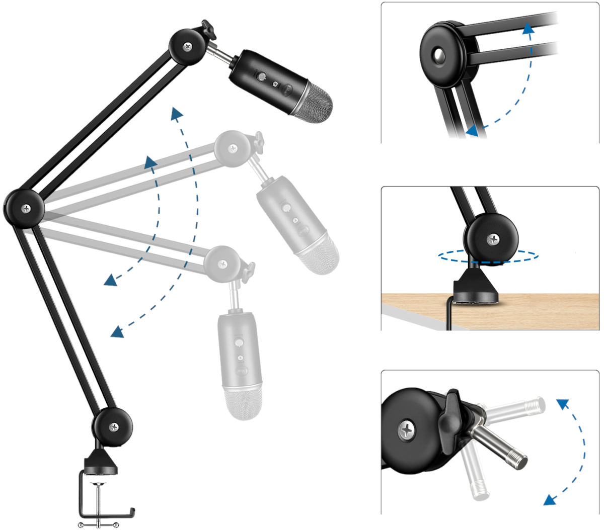 ✅ Regulowana długość ramienia – 2×52 cm dla pełnej swobody ustawienia mikrofonu