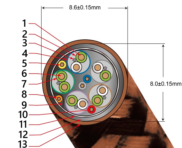 - Średnica zewnętrzna pojedynczego przewodu – 8.75mm