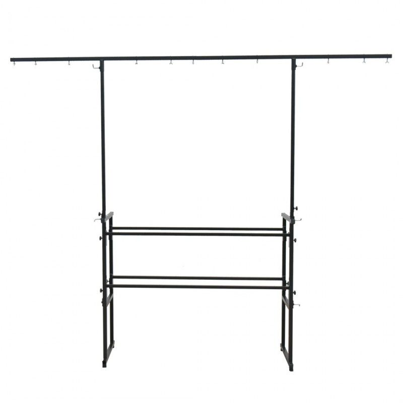 STAND4ME DJ120T MKII to wysokiej jakości uniwersalny, 4-stopowy statyw, będący doskonałym rozwiązaniem dla mobilnych DJ-ów. Cała konstrukcja ma szerokość 1,2 m i jest wystarczająco wytrzymała, żeby utrzymać większość mobilnych urządzeń estradowychStelaż wyposażony został w dwie półki. Górna zaprojektowana została z myślą o konsoletach i stołach mikserskich. Dolna idealnie nadaje się do ustawiania na niej wzmacniaczy, procesorów dźwięku czy kontrolerów oświetlenia. Poprzeczka oświetleniowa ma szerokość 260 cm i możliwość regulacji wysokości od 215 do 246 cm. Posiada też 11 otworów montażowych pasujących do niemal wszystkich efektów świetlnych, reflektorów czy urządzeń estradowych. Opcjonalny pokrowiec zapewnia łatwy transport (do kupienia na osobnej aukcji). To idealny stand, szczególnie dla mobilnych DJ-ów.