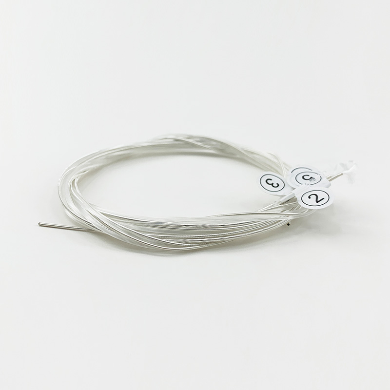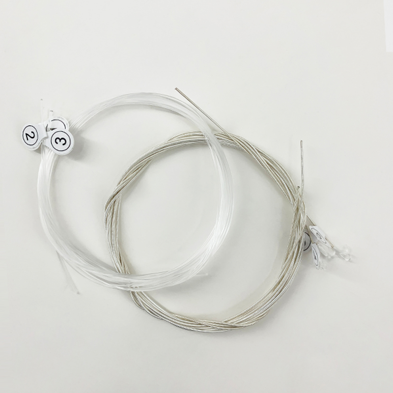 Górne struny nylonowe pokryte cienką warstwą posrebrzanego stopu miedzi—zapewniają zrównoważone brzmienie i większą trwałość.
