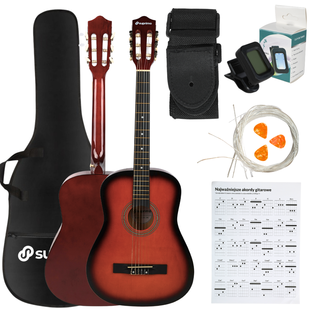 ⭐ Suprimo CGS3 SB – gitara klasyczna 4/4 z kompletnym zestawem akcesoriów dla początkujących