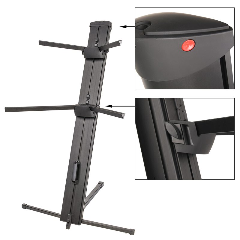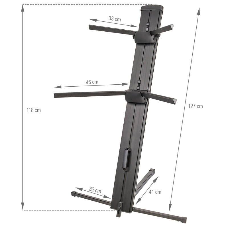 V-tone Deluxe K2 to profesjonalny, bardzo solidny ✅ dwupoziomowy statyw klawiszowy z regulacją wysokości górnej i dolnej podstawy oraz możliwością instalacji dodatkowego ramienia mikrofonowego. Stojak stanowi doskonałe rozwiązanie dla wszystkich muzyków wykorzystujących w swojej pracy dwa różne instrumenty. Świetnie sprawdza się na scenie podczas koncertów live, w klubach muzycznych, studiach nagraniowych, a także w salach prób oraz podczas codziennej gry i ćwiczeń w domu.