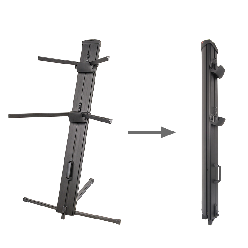 Pylon nośny statywu klawiszowego V-tone Deluxe K2 wykonany został z odlewu aluminium, dzięki czemu jest stosunkowo lekki, a jednocześnie bardzo wytrzymały. Konstrukcja jest ✅ całkowicie składana, a podpory tworzące górną i dolną podstawę oraz nogi chowają się w korpus obudowy umożliwiając łatwy transport i przechowywanie statywu. Nowoczesny design oraz ergonomiczna konstrukcja gwarantują wygodę użytkowania i estetyczny wygląd na każdej scenie.