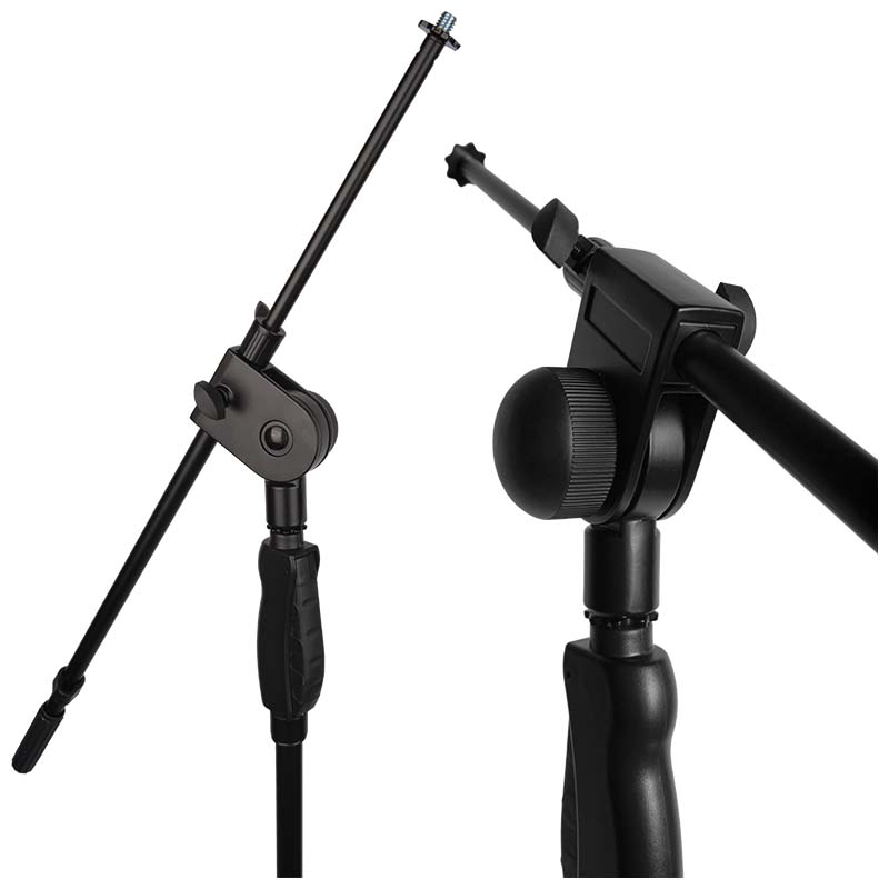 Największą zaletą statywu mikrofonowego V-tone Deluxe M1 jest możliwość regulacji wysokości sztycy pionowej w zakresie od 100 do 160 cm ✅ tylko jedną ręką. Jest to możliwe dzięki uchwytowi ze sprzęgłem samoblokującym, które umożliwia szybkie i ergonomiczne dostosowanie stojaka do naszych indywidualnych potrzeb. Łamane ramię ma długość 80 cm, a jego kąt nachylenia, wysunięcie i obrót względem osi pionowej również są regulowane.