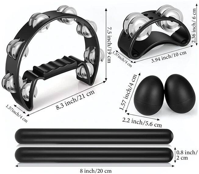 • Różnorodność instrumentów: W zestawie znajdują się różne przeszkadzajki, które oferują wyjątkowe brzmienia – od grzechotek, tamburynu po pałeczki, co pozwala na tworzenie unikalnych rytmów.